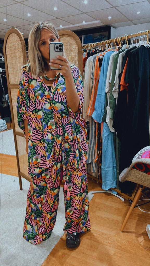Ensemble chemise et pantalon à motifs floraux