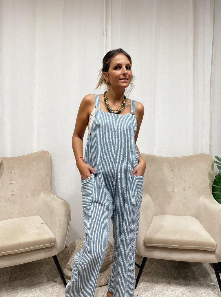 Salopette à rayures en lin